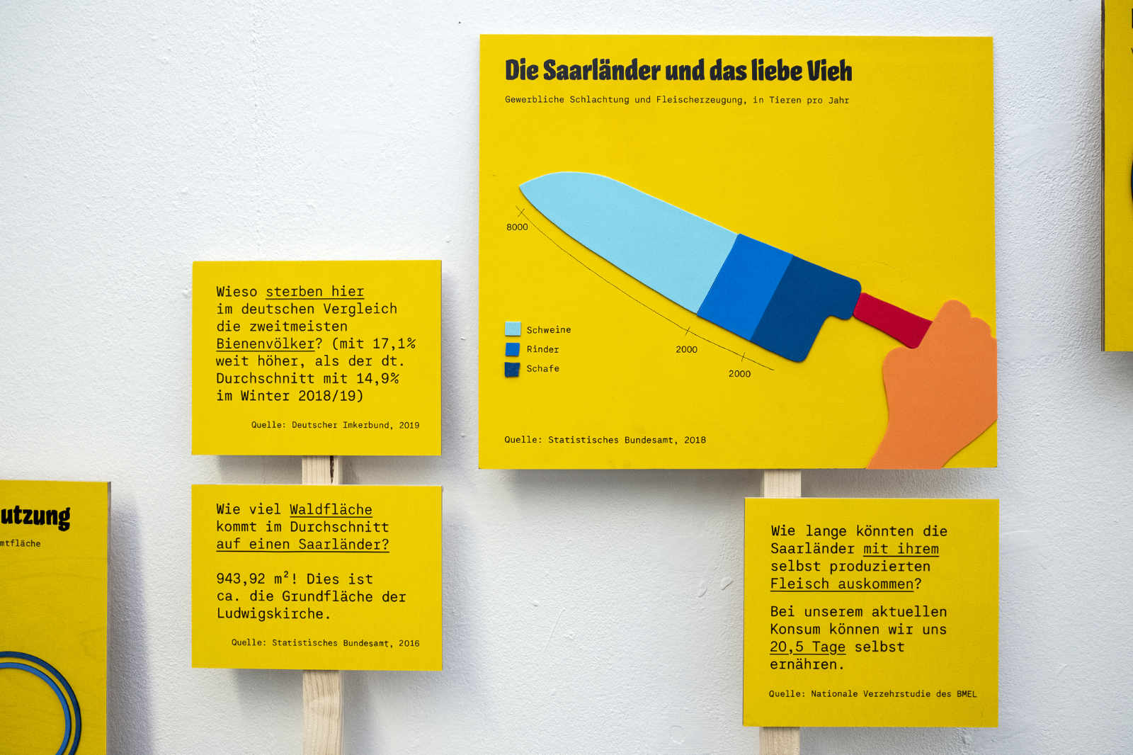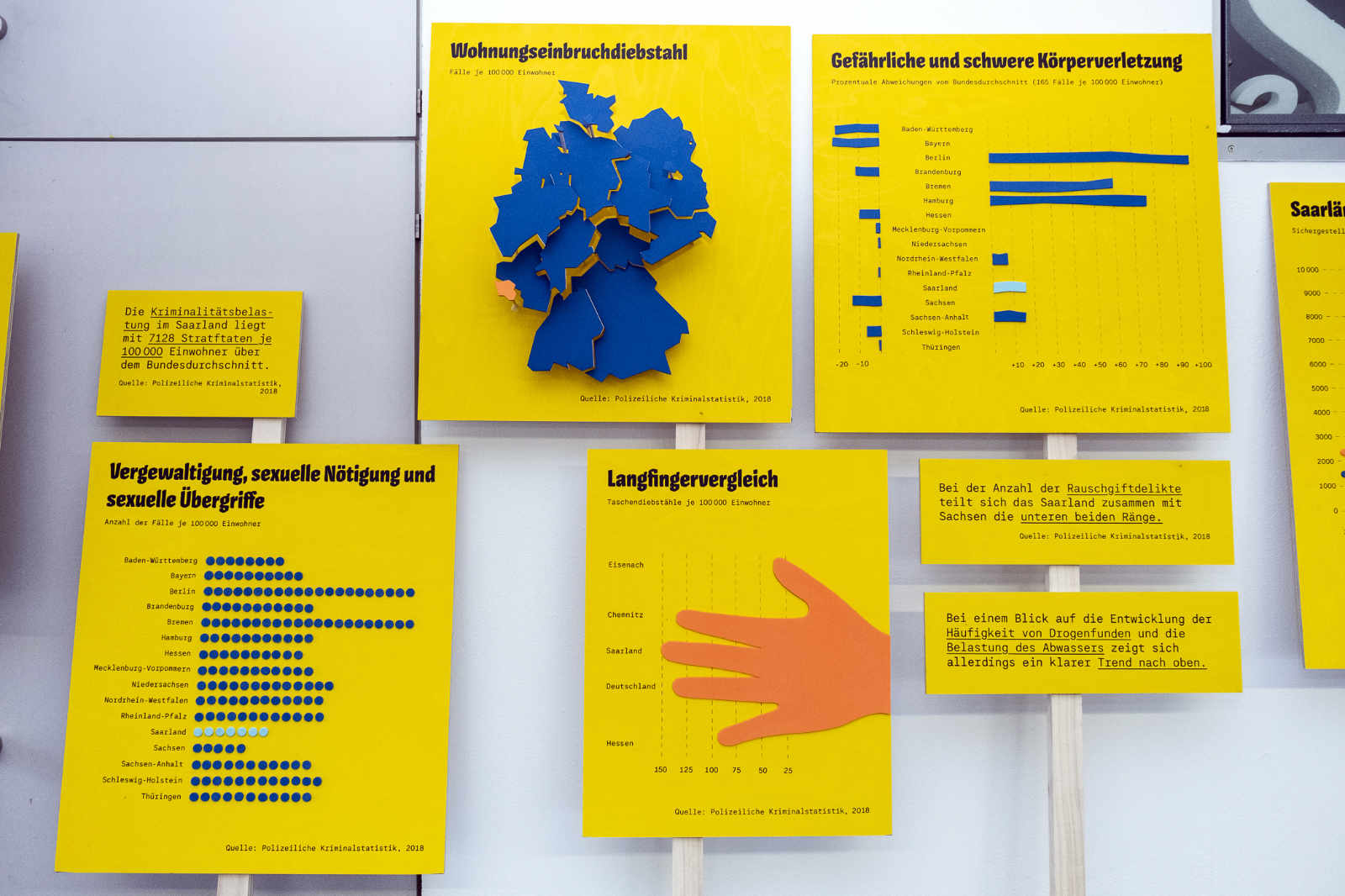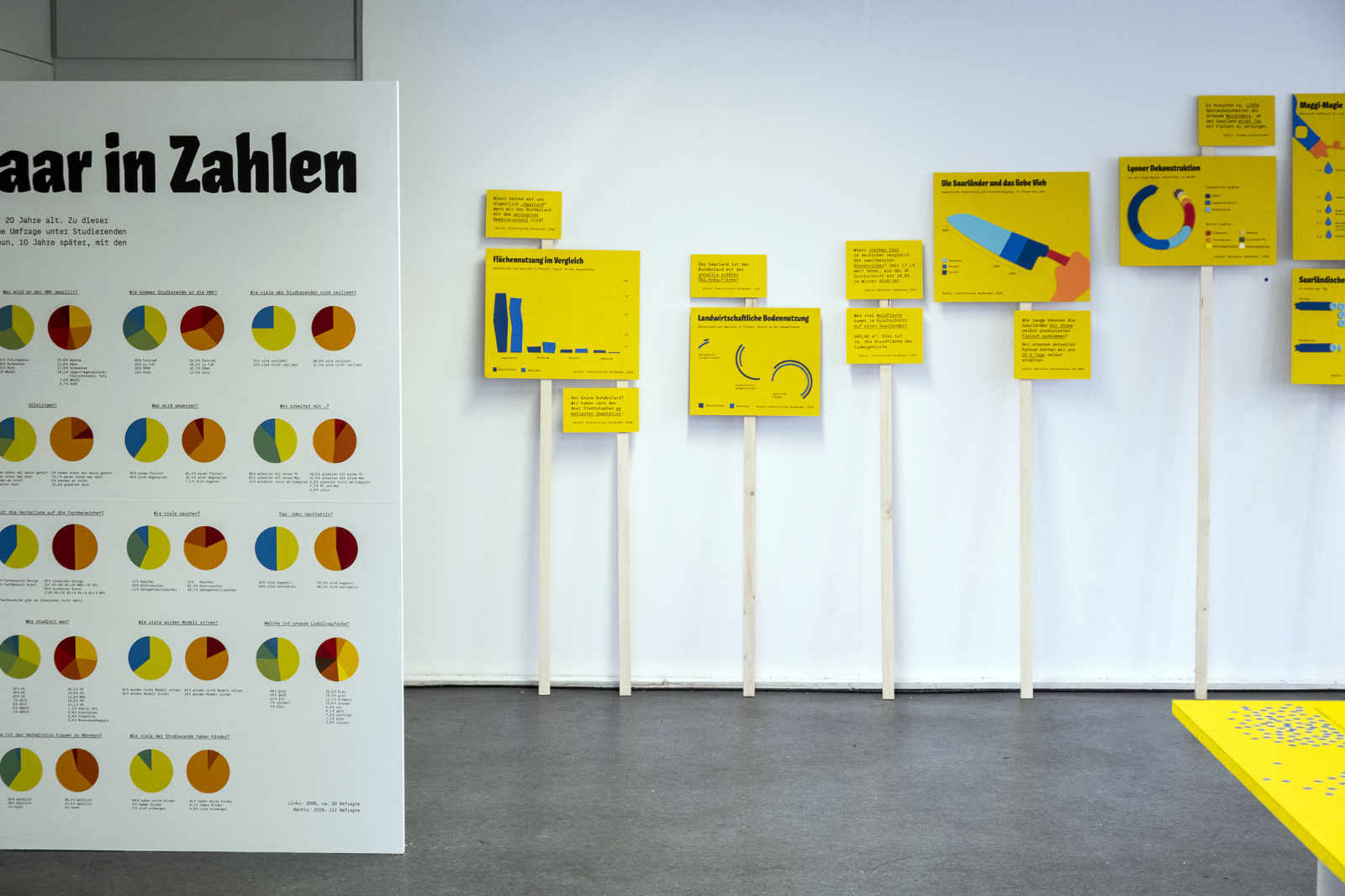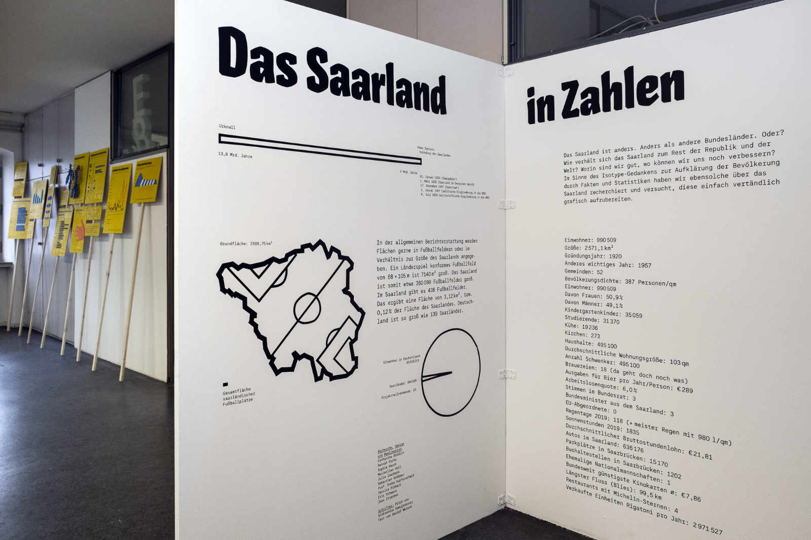 »Das Saarland in Zahlen« ist als Atelierprojekt im Wintersemester 2019/20 im Studiengang Kommunikationsdesign der Hochschule der Bildenden Künste Saar (HBKsaar) entstanden, betreut von Prof. Indra Kupferschmid.
